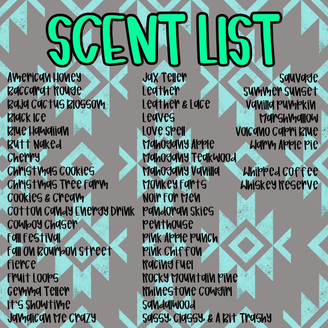 - You can find all of our scent choices and their descriptions on the scent description page when clicking on the car freshie category. If you have any questions, please message me! I'd be happy to help!
